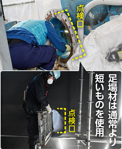 足場材や塗装工事に使用するものはすべてこの点検口から搬入する