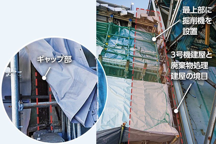 3号機原子炉建屋と廃棄物処理建屋間のギャップを上部から掘り進める現場